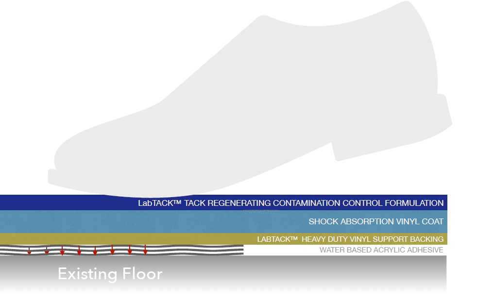 LabTACK is a permanent TACK-Regenerating Contamination Control flooring system to support maintaining your cleanroom in a well controlled condition.